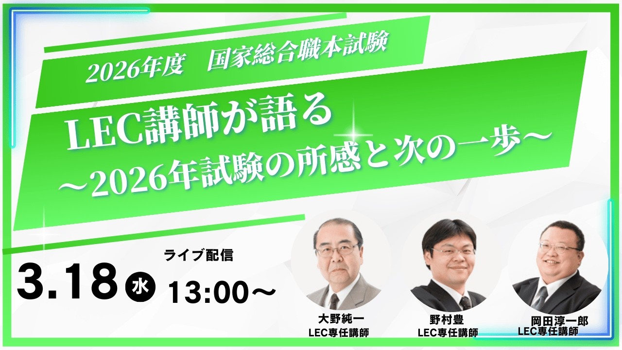 【LEC公務員講座の解説動画】【LEC公務員/ライブ配信】2026年度国家総合職本試験をLEC講師が語る!~2026年試験の所感と次の一歩~(2026/03/18、13時から公開予定)